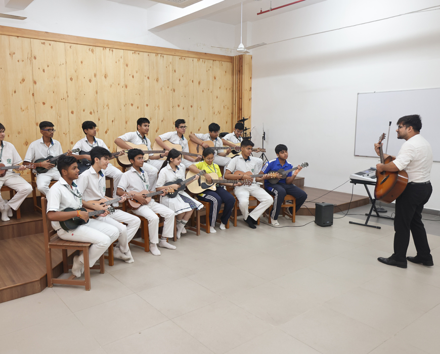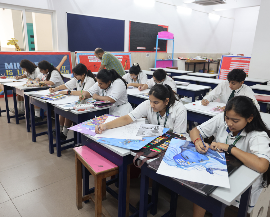 The school follows the progressive pattern of Central Board of Secondary Education (CBSE) with state-of-the-art infrastructure including digital/IT enabled classrooms, a secure network of CCTV cameras, well equipped labs for Computers, Sciences, Social Sciences, Math, Auditorium and a dedicated fraternity of staff to ensure safety and well being of your children.